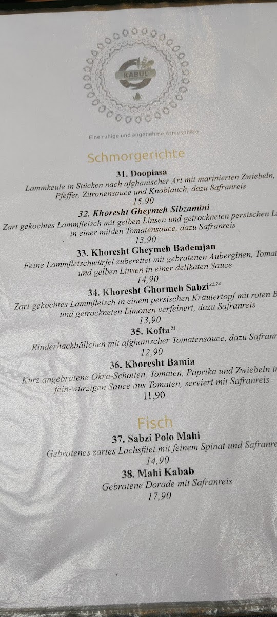Kabul Restaurant Persische & Afghanische Restaurant in Leipzig Menu